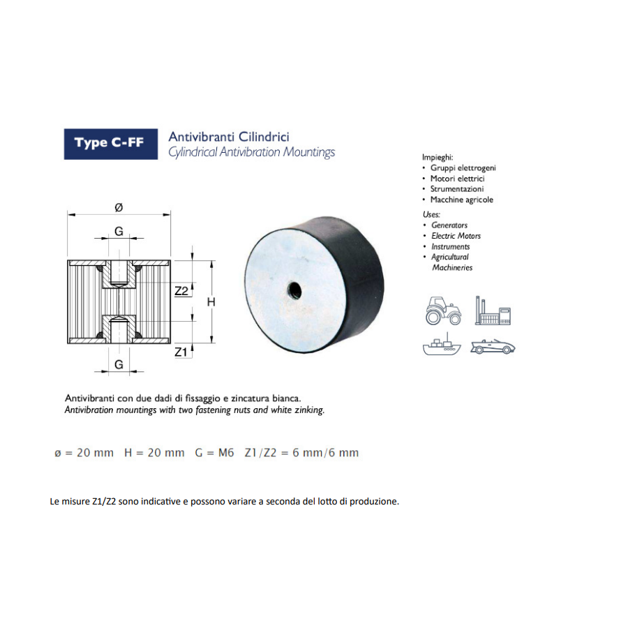 Antivibrante cilindrico in gomma FF