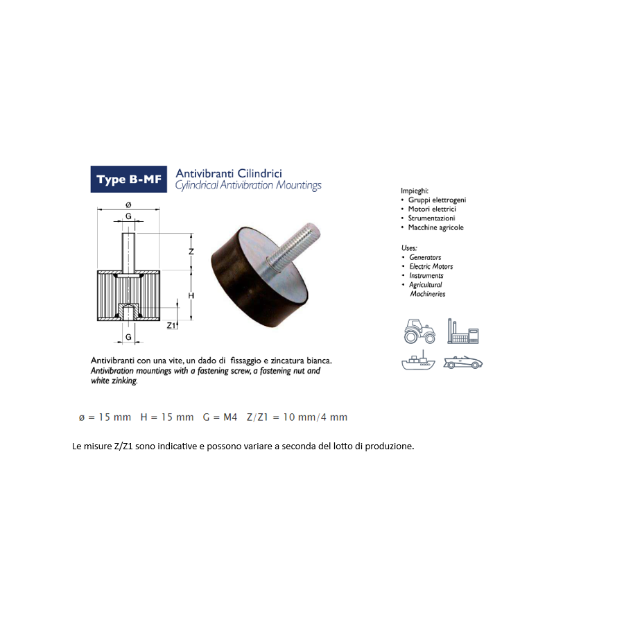 Antivibrante cilindrico in gomma MF