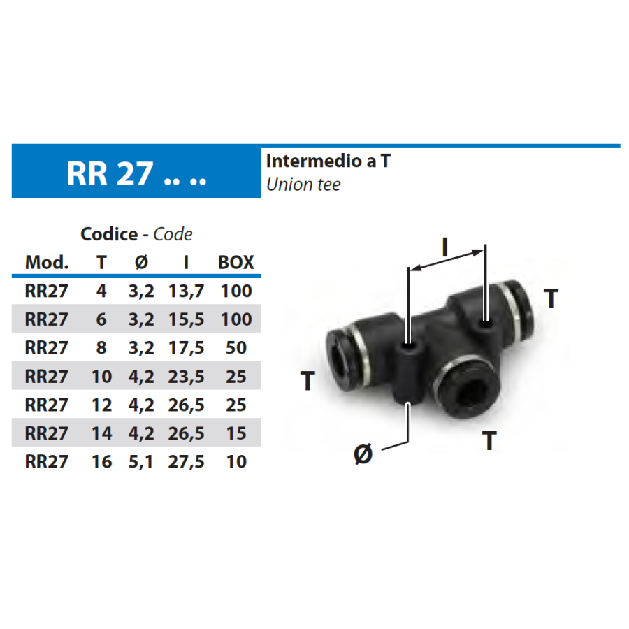 I raccordi a T sono disponibili nelle seguenti misure/modelli: